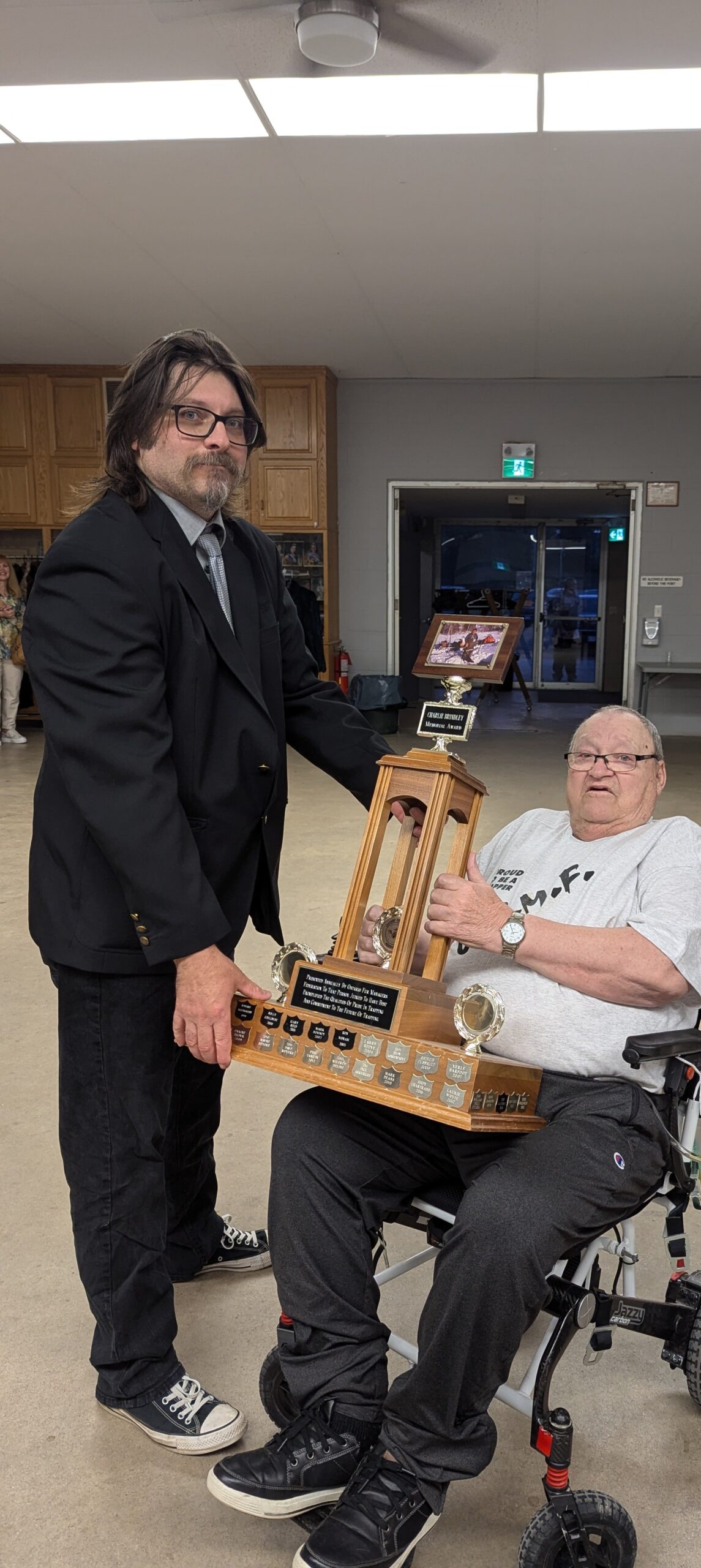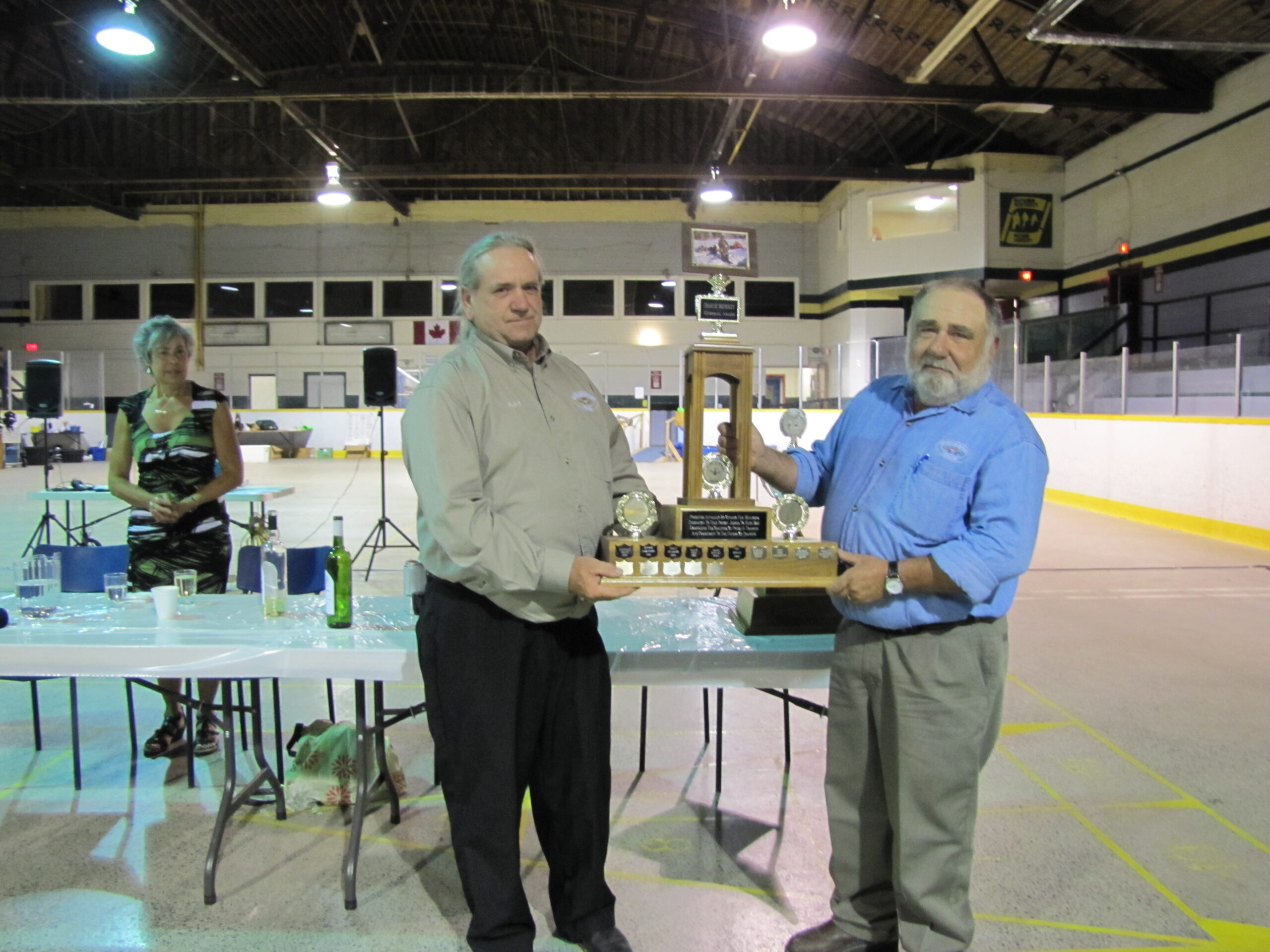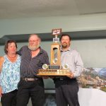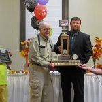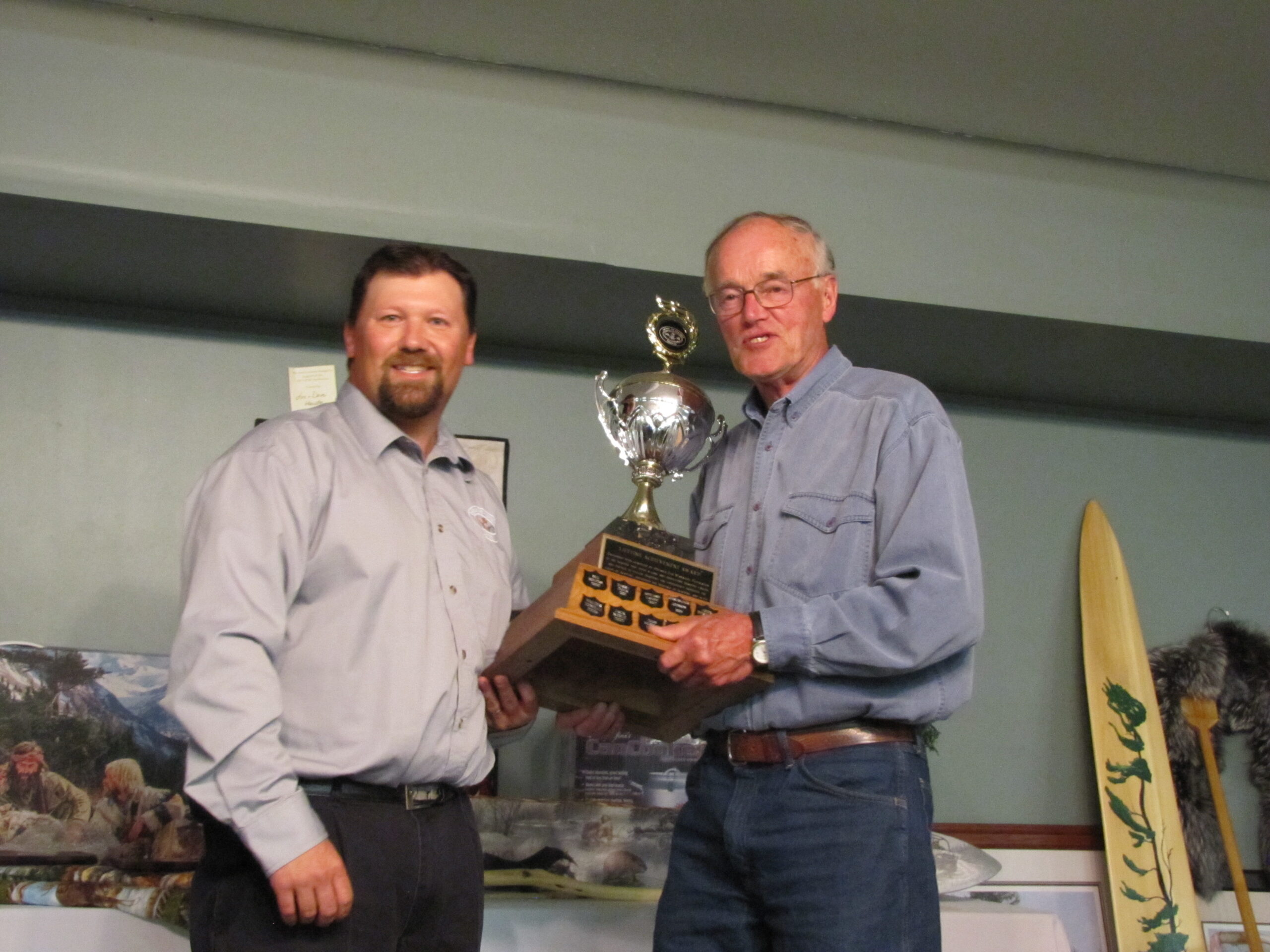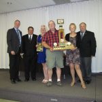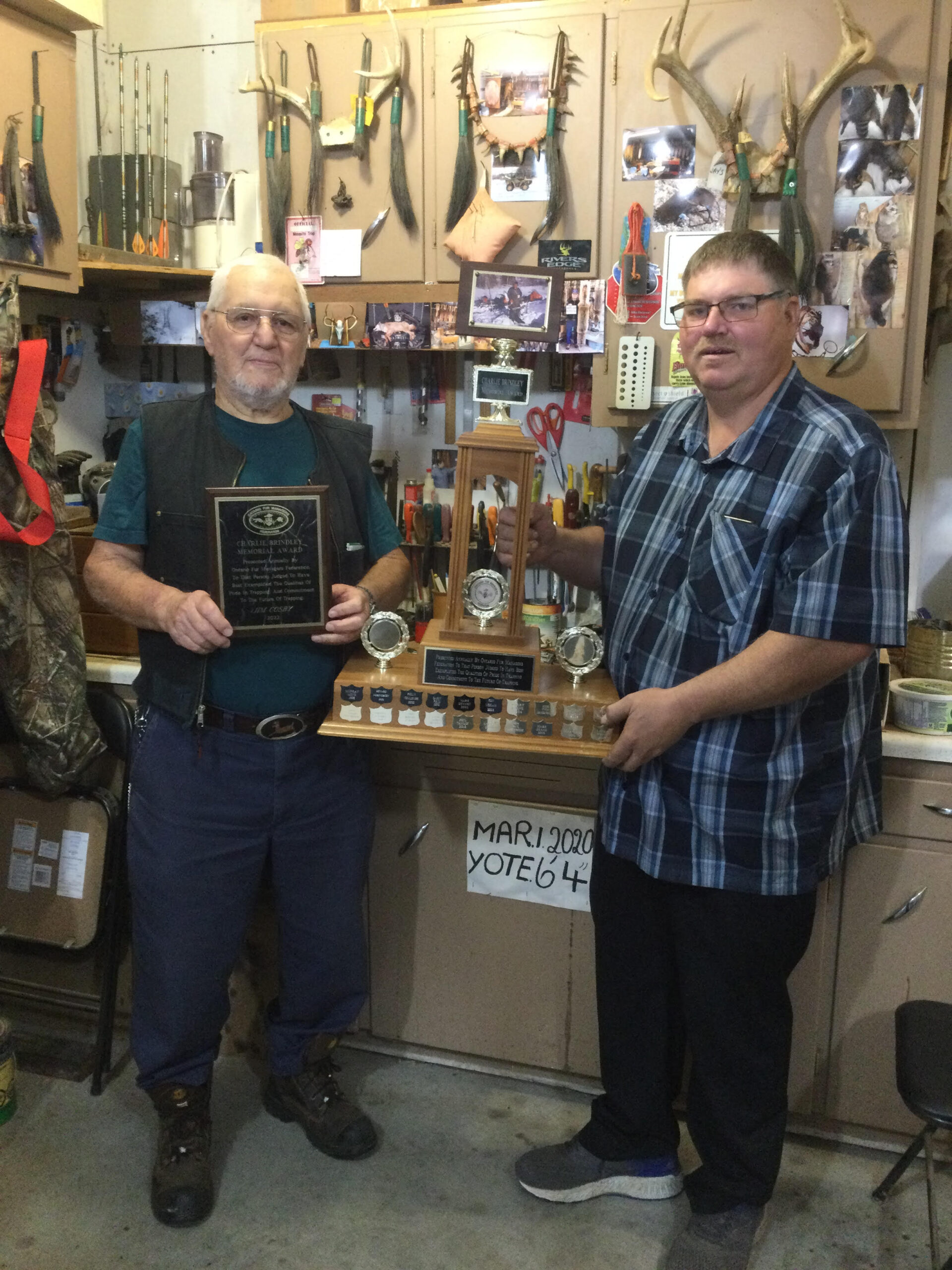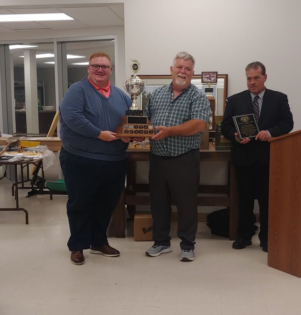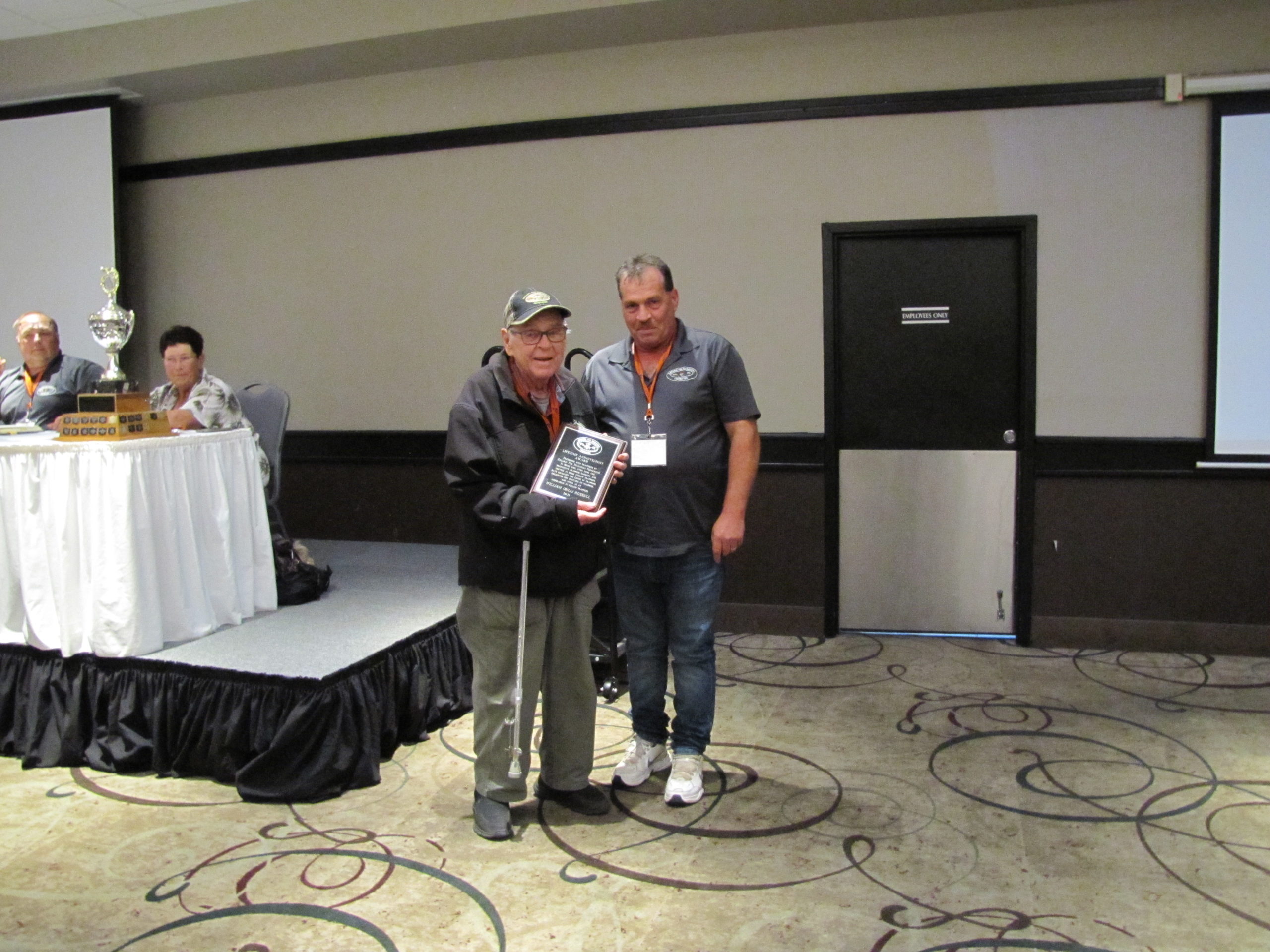 - Bill Davies (center) being awarded the Lifetime Achievement Award by Minister of Natural Resources Graydon Smith (left) and OFMF President Scott Sears (right)