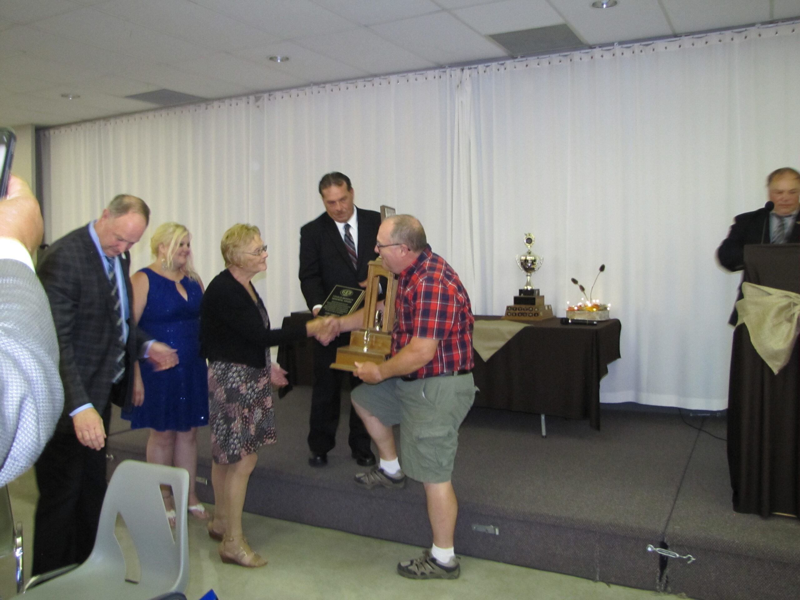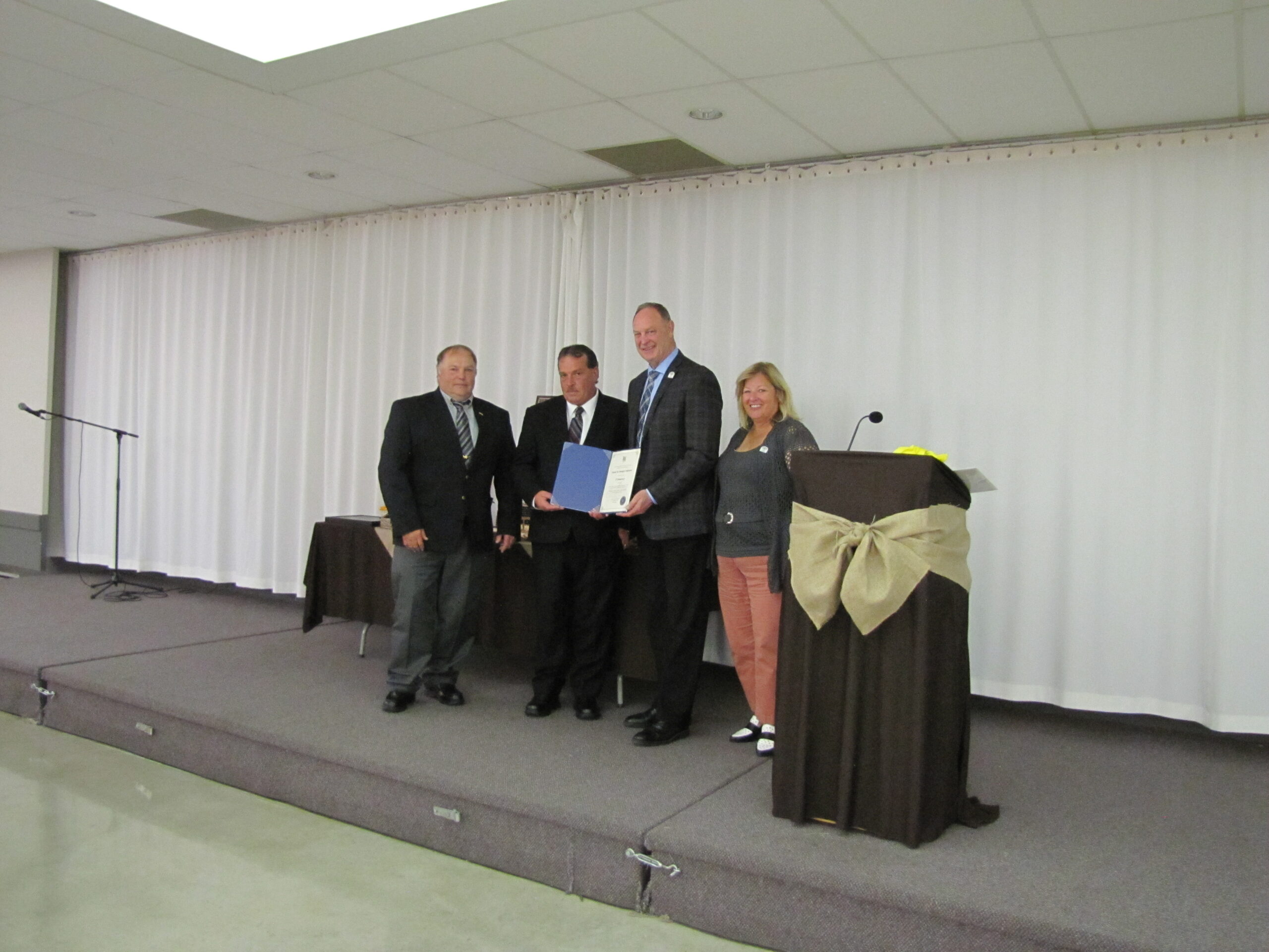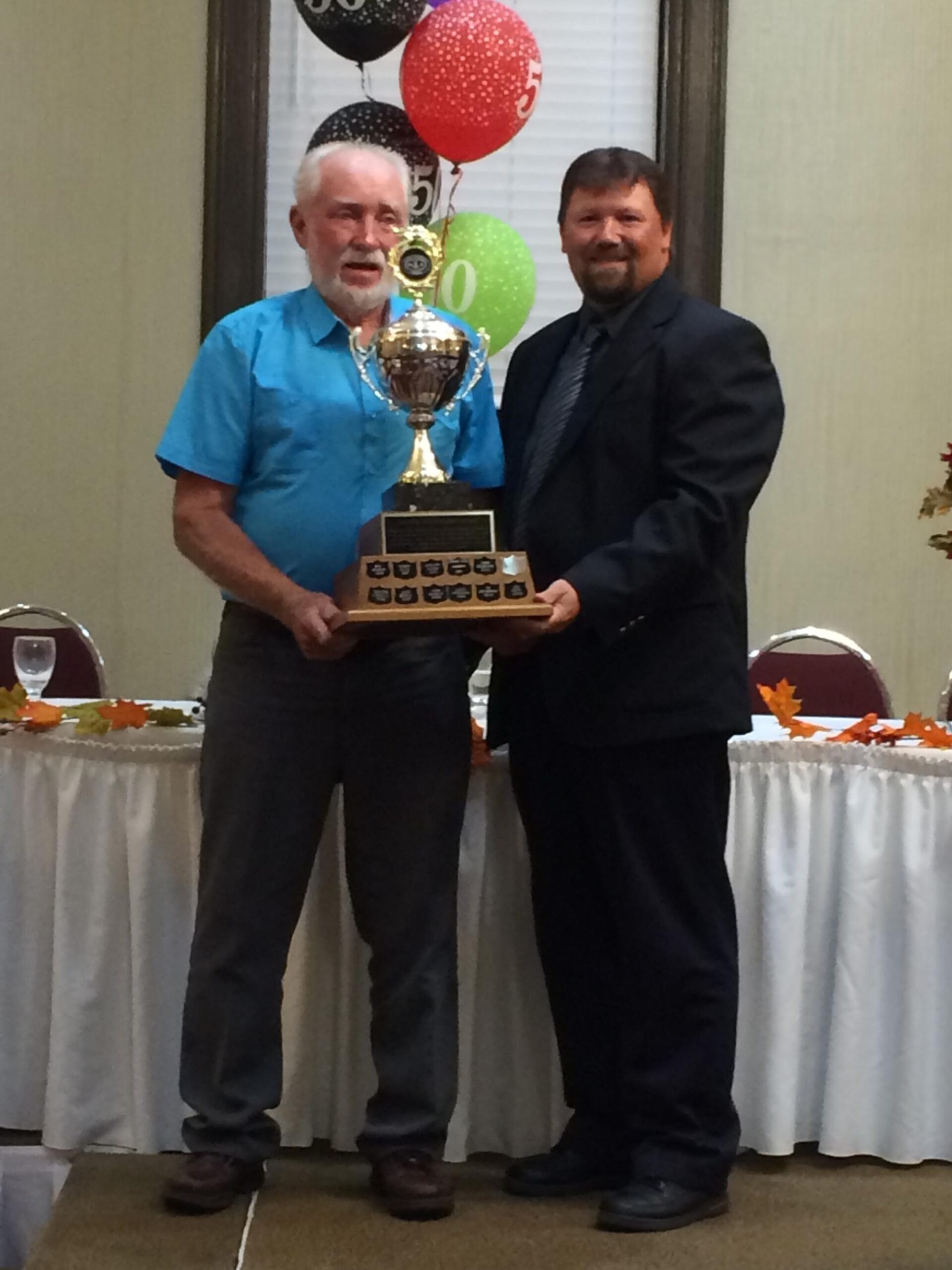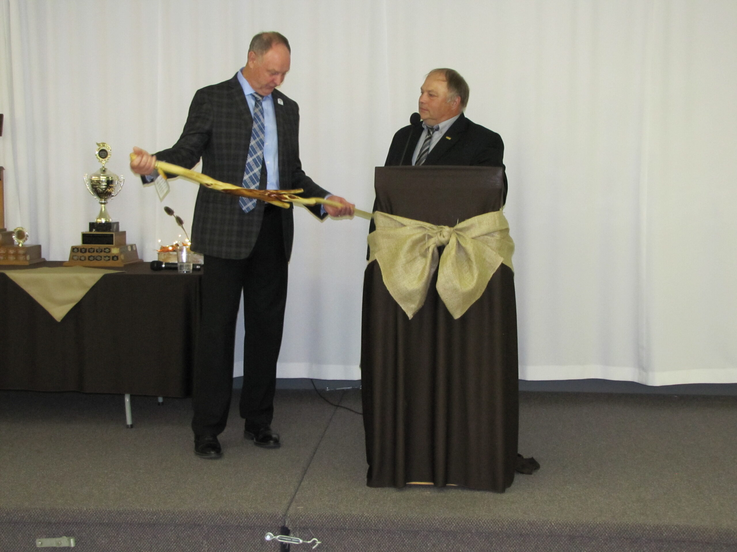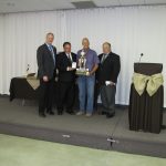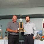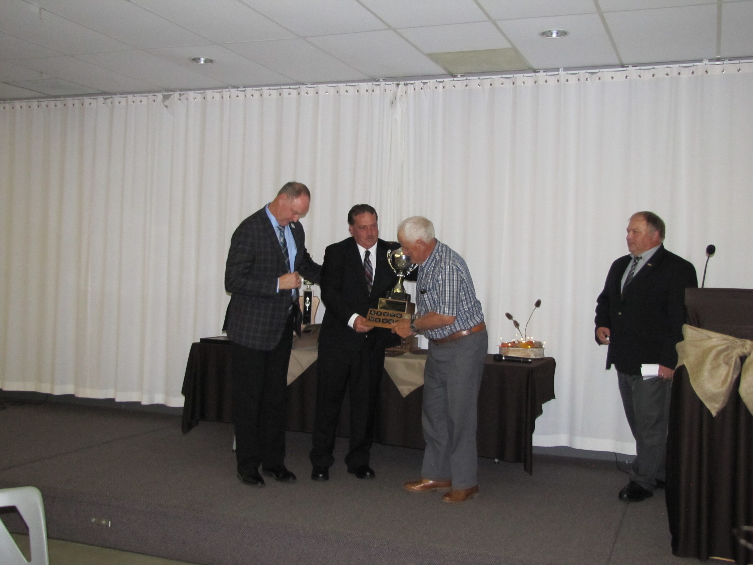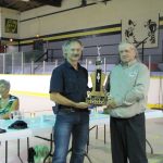 - Bill Davies (center) being awarded the Lifetime Achievement Award by Minister of Natural Resources Graydon Smith (left) and OFMF President Scott Sears (right)