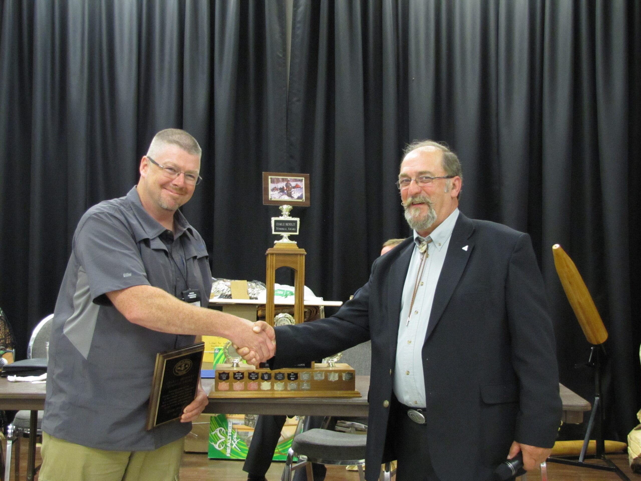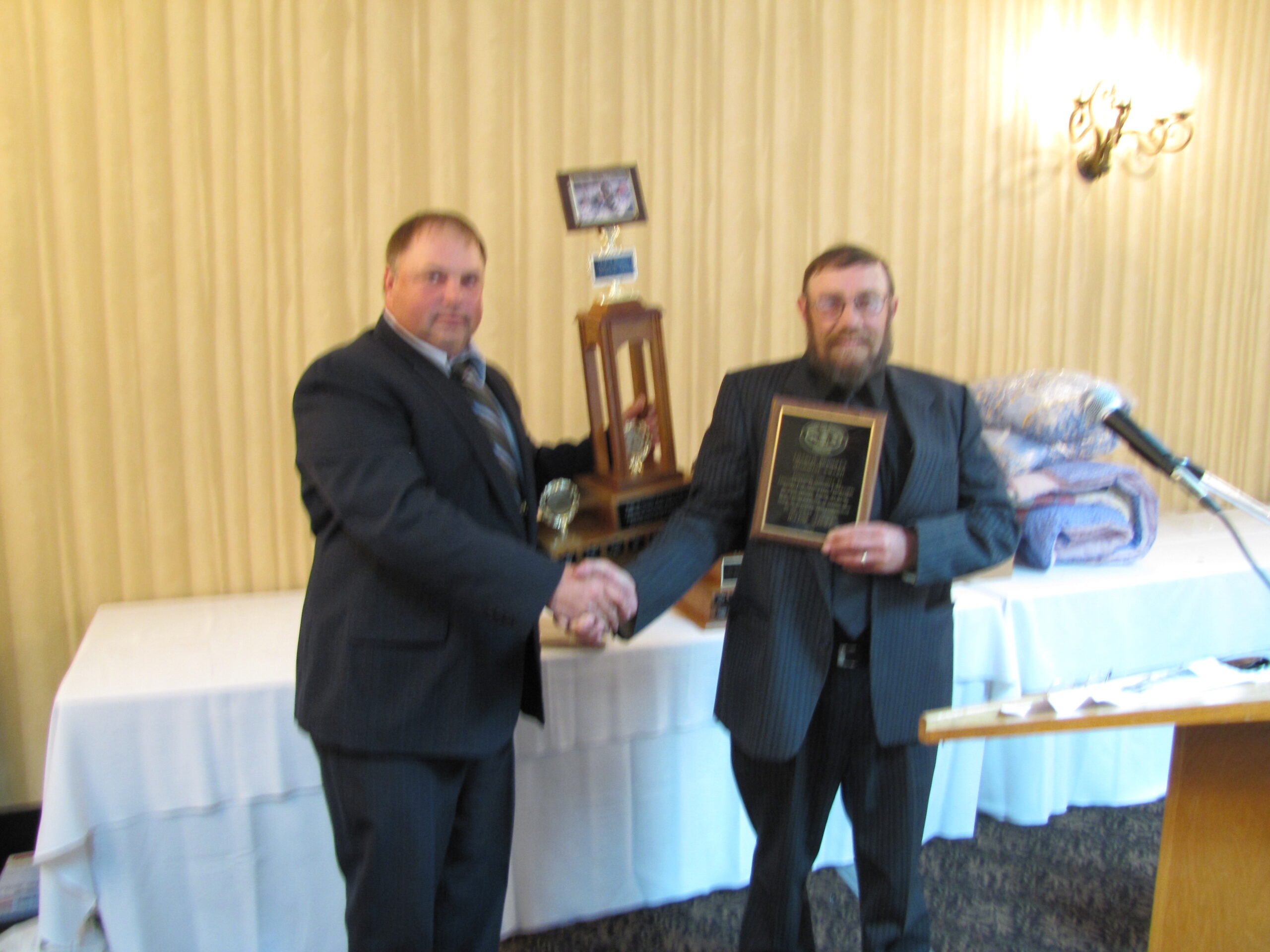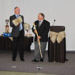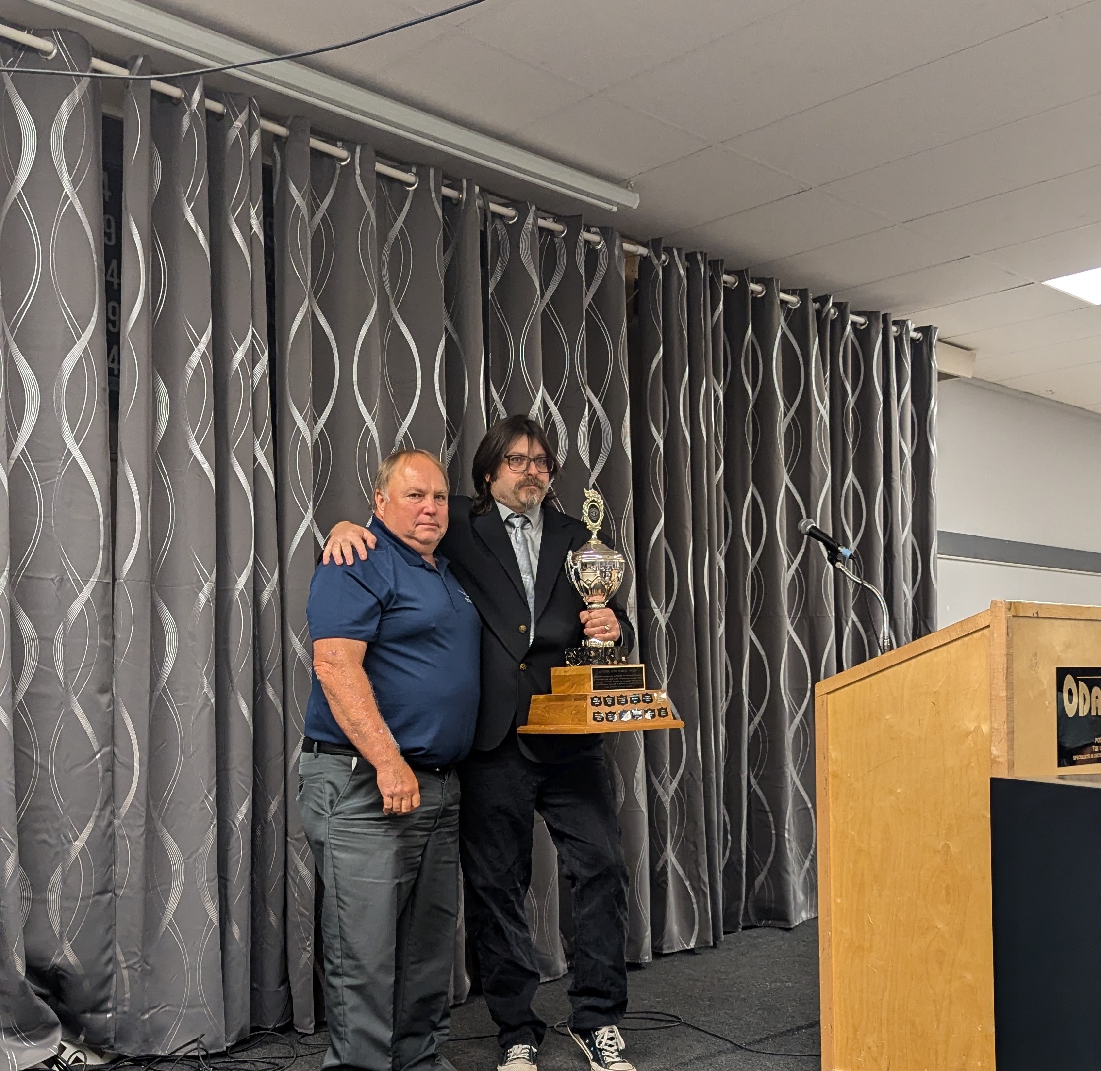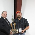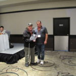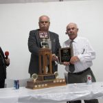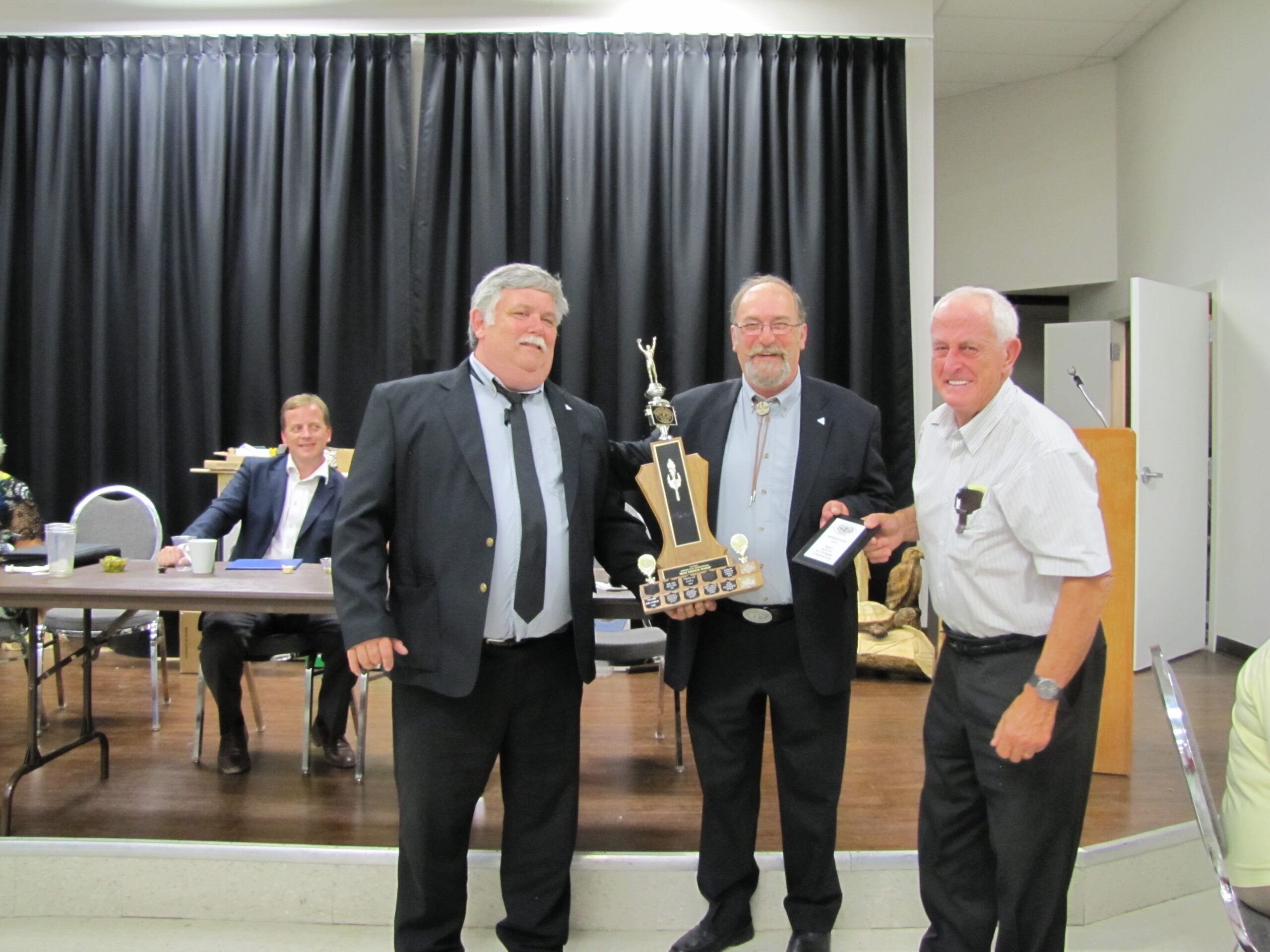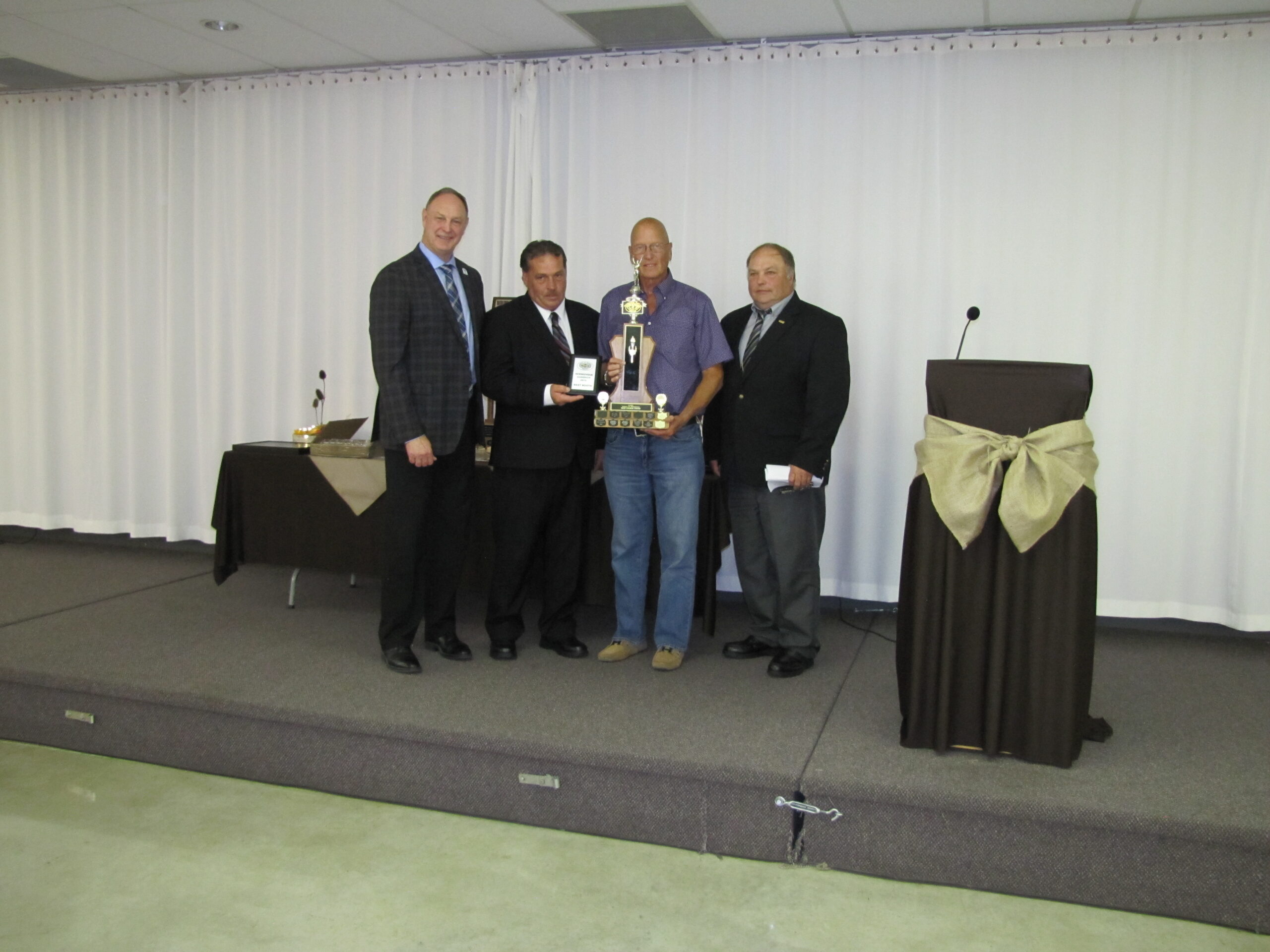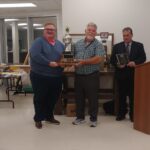 - Bill Davies (center) being awarded the Lifetime Achievement Award by Minister of Natural Resources Graydon Smith (left) and OFMF President Scott Sears (right)