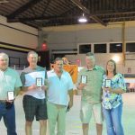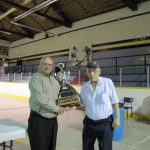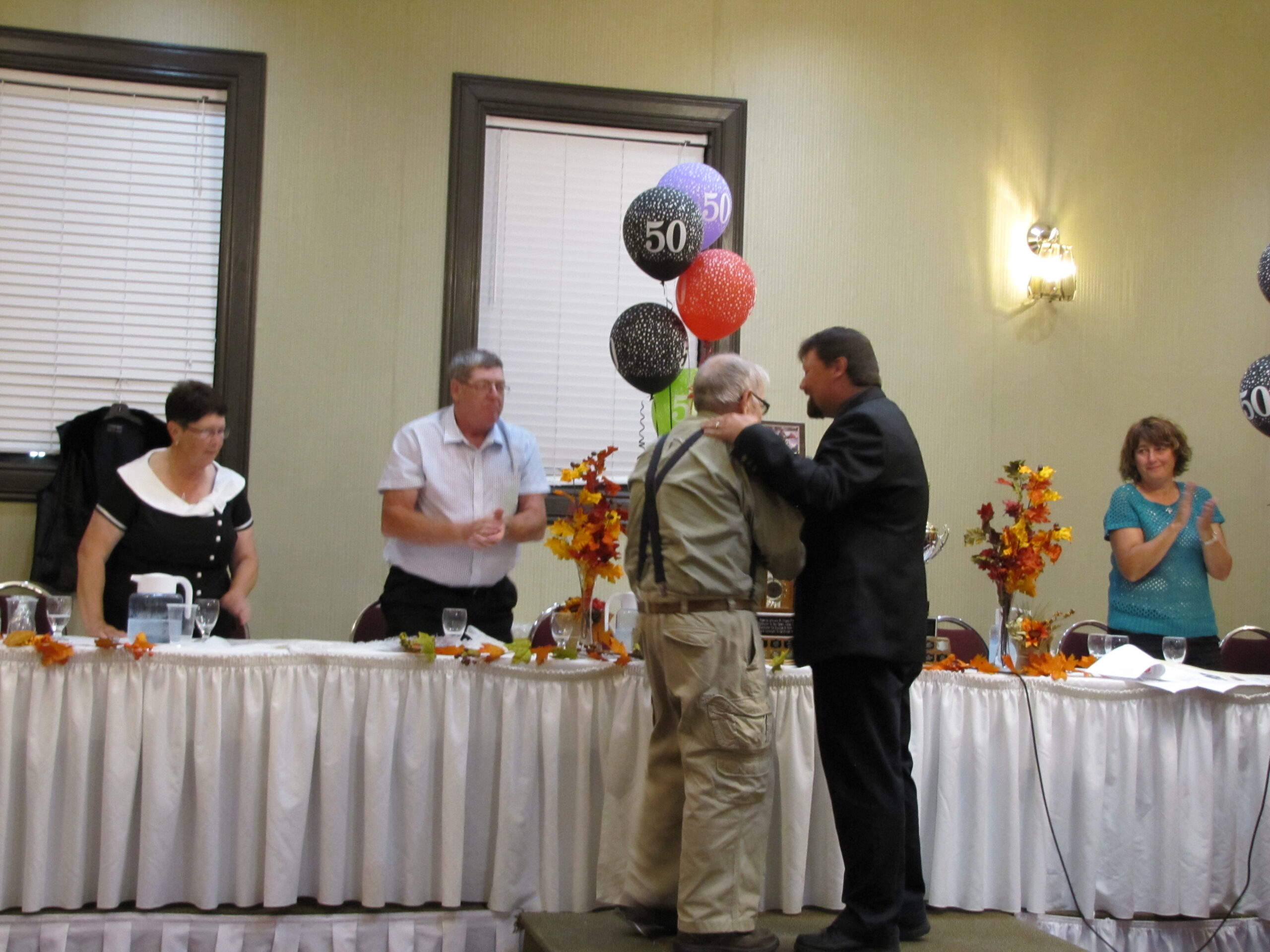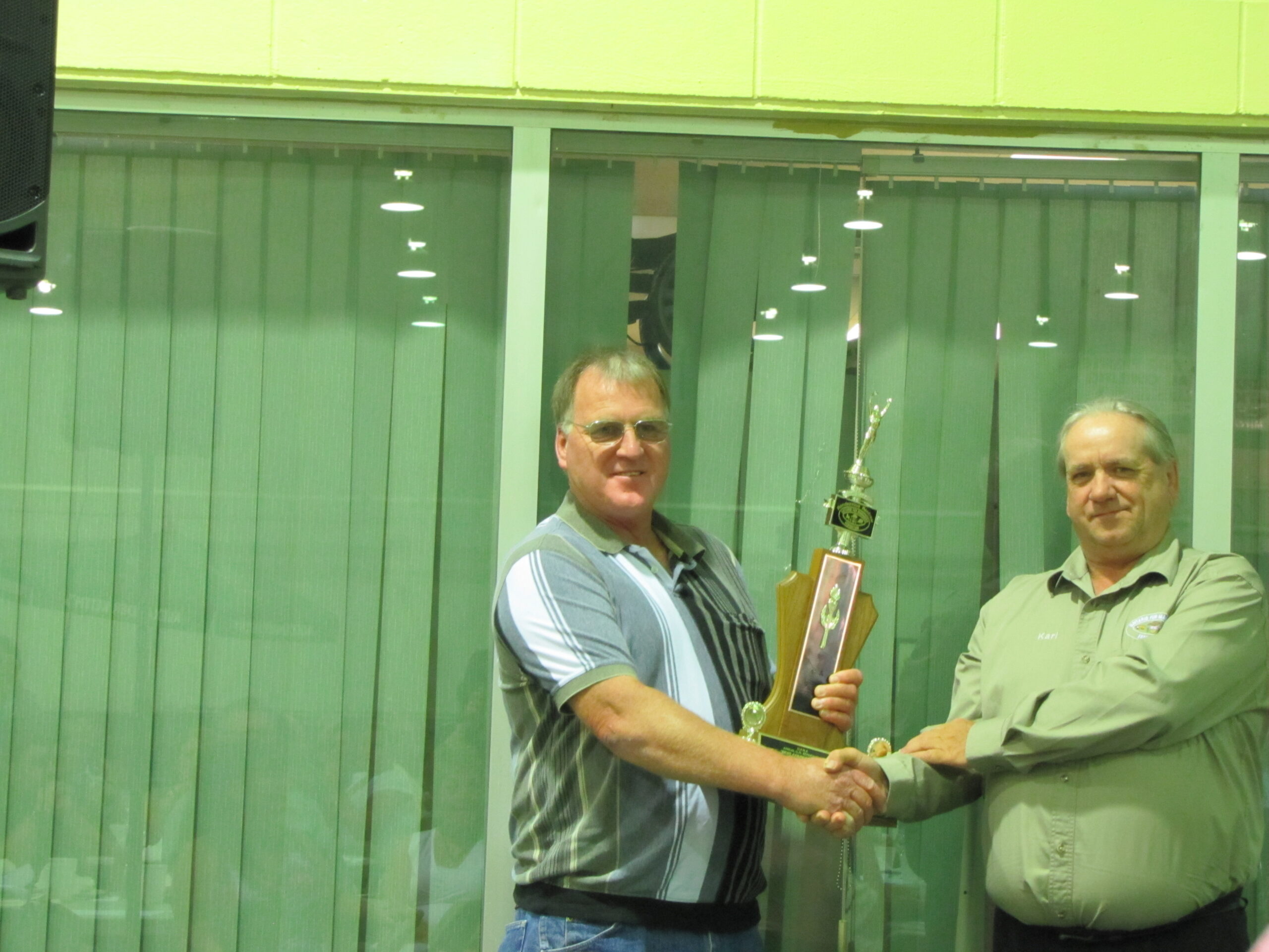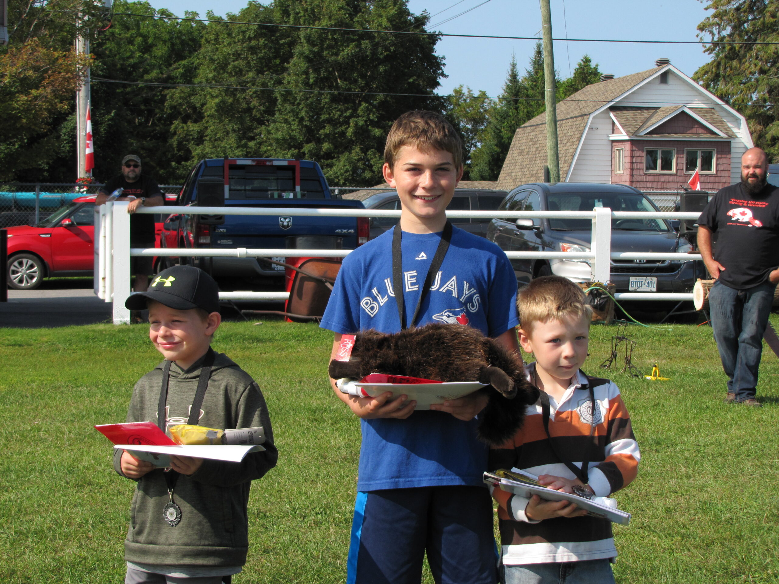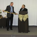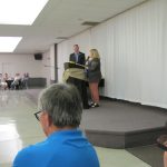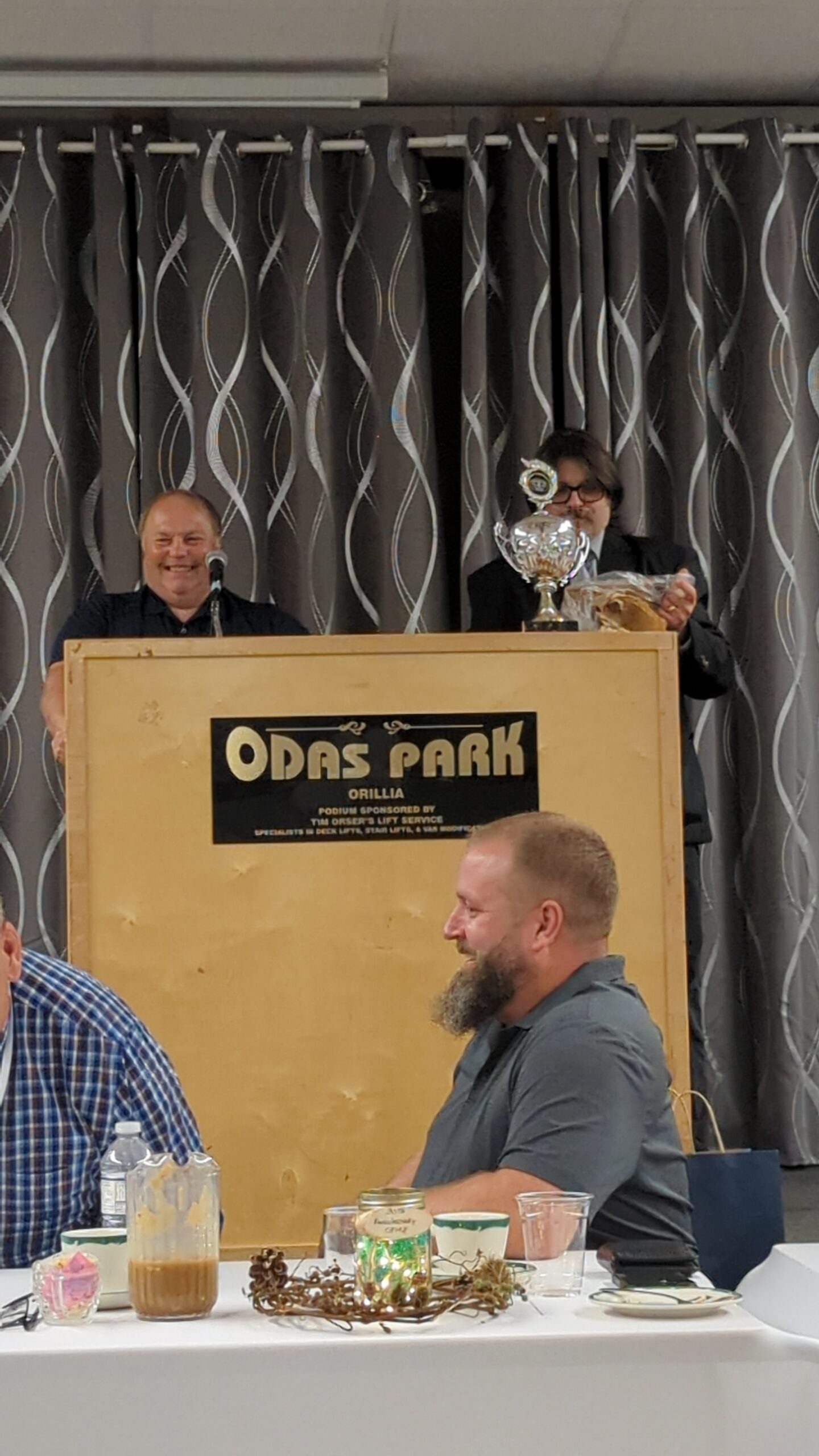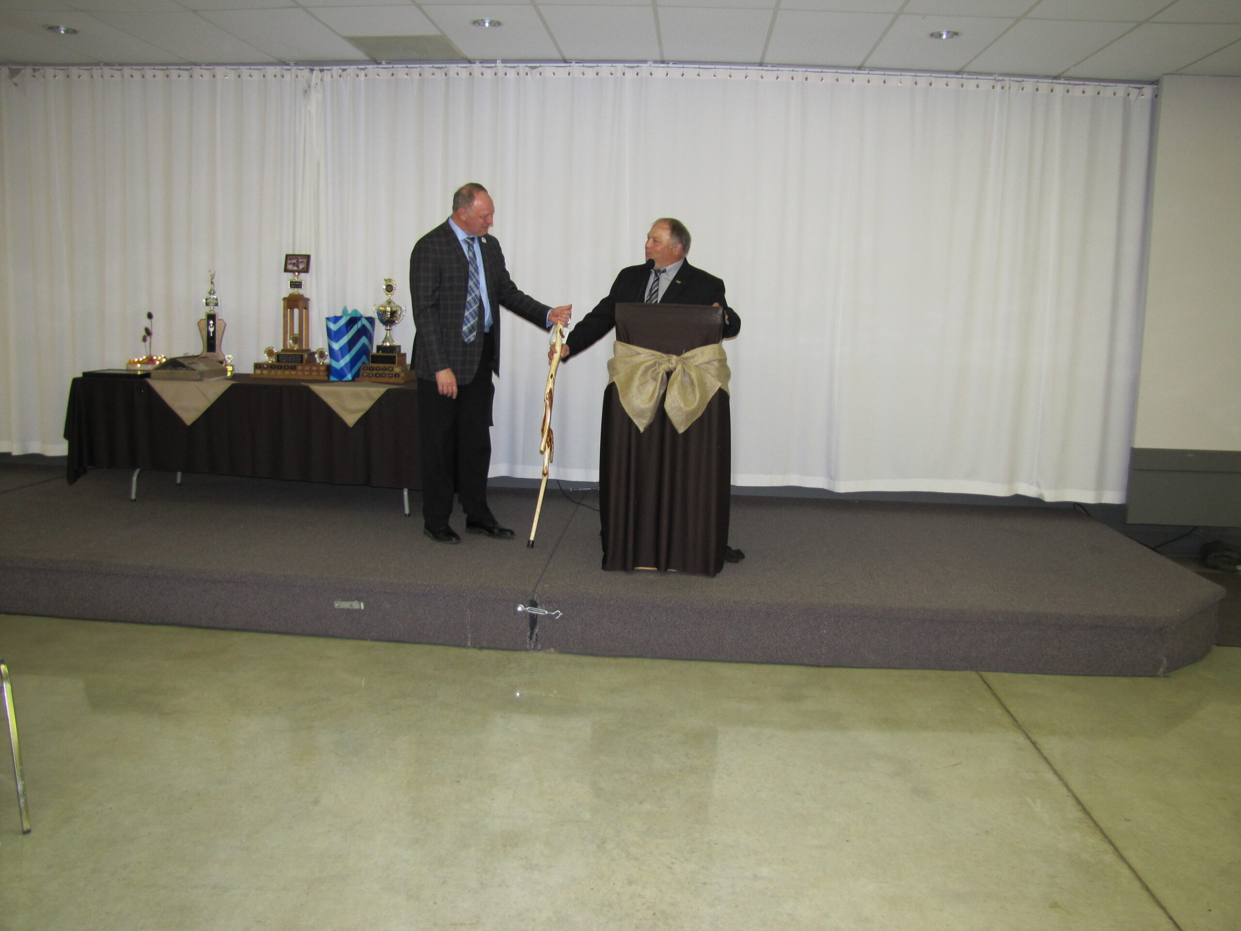- Bill Davies (center) being awarded the Lifetime Achievement Award by Minister of Natural Resources Graydon Smith (left) and OFMF President Scott Sears (right)