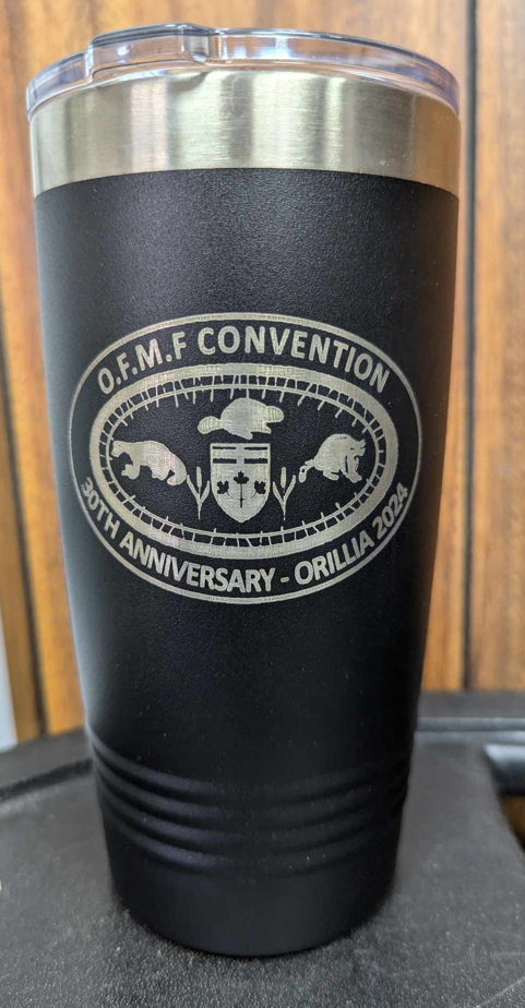 20 oz Black Metal Tumbler with Lid – Engraved OFMF 2024 AGM